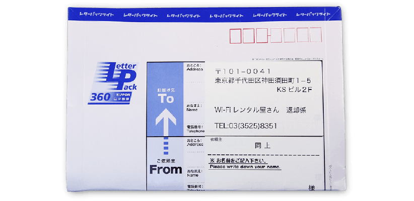 ご利用が終了しましたら、レンタル商品を返送用レターパックに入れて郵便ポストに投函してください。
