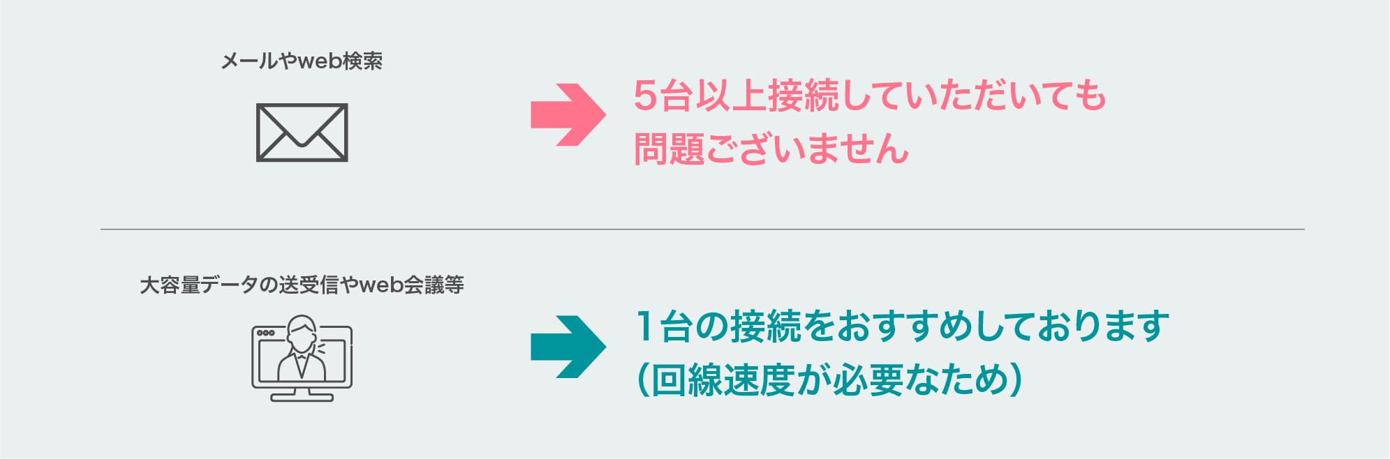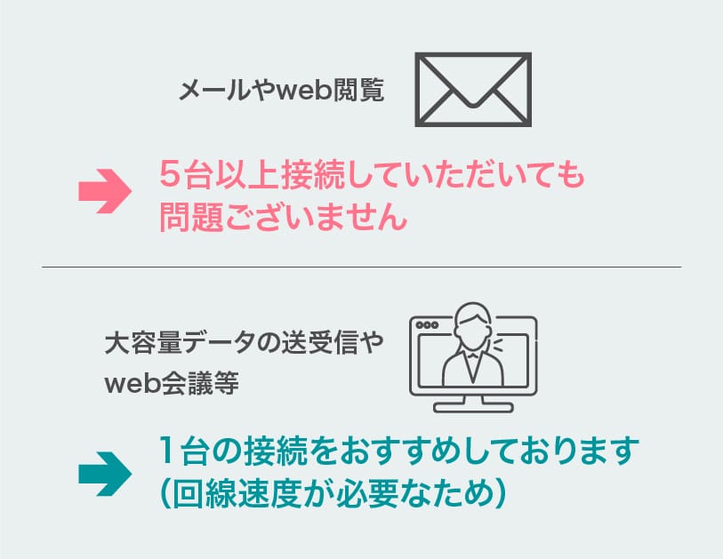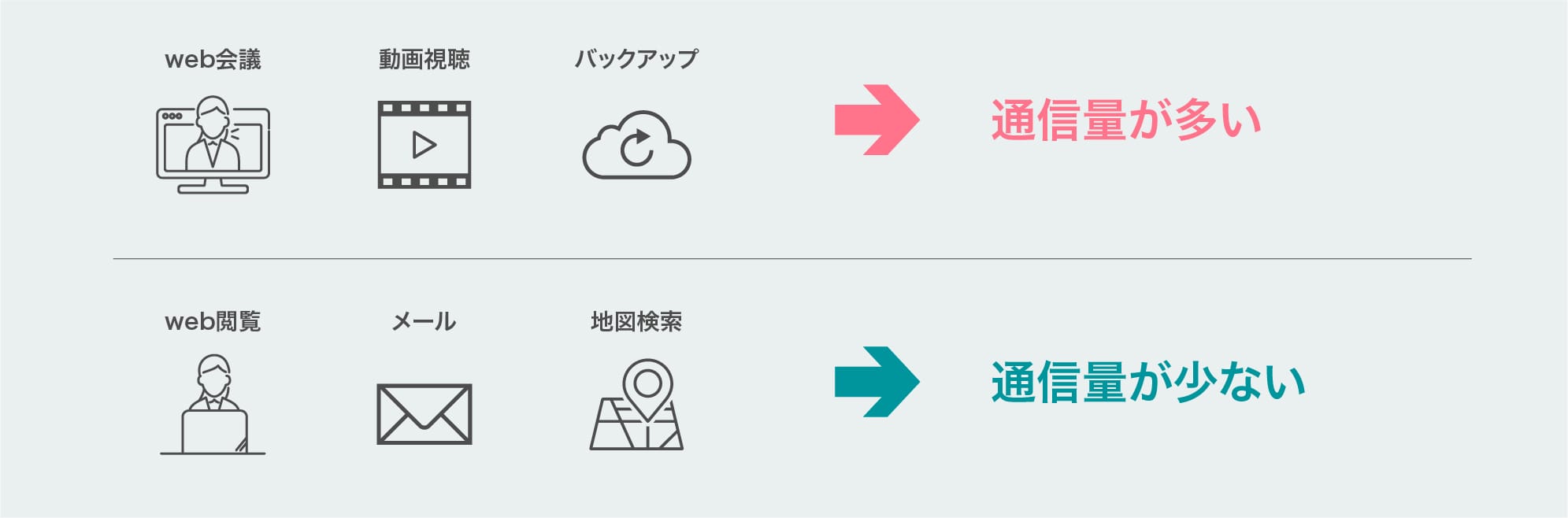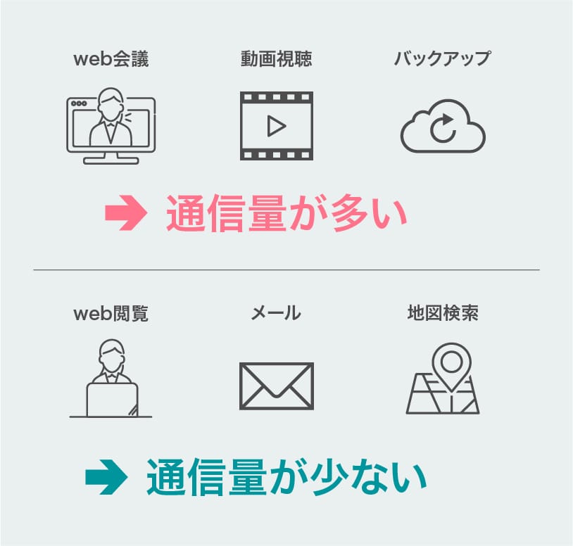 ご利用内容ごとの通信量の目安は下記をご確認ください。