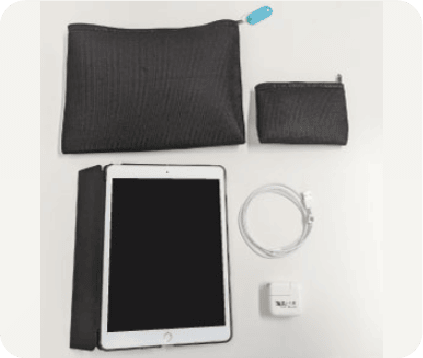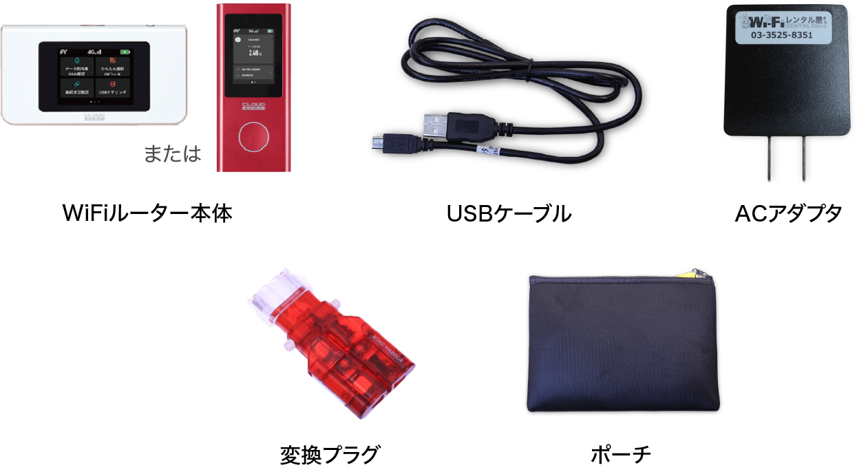 ACアダプター、USBケーブル、変換プラグ、ポーチ×2